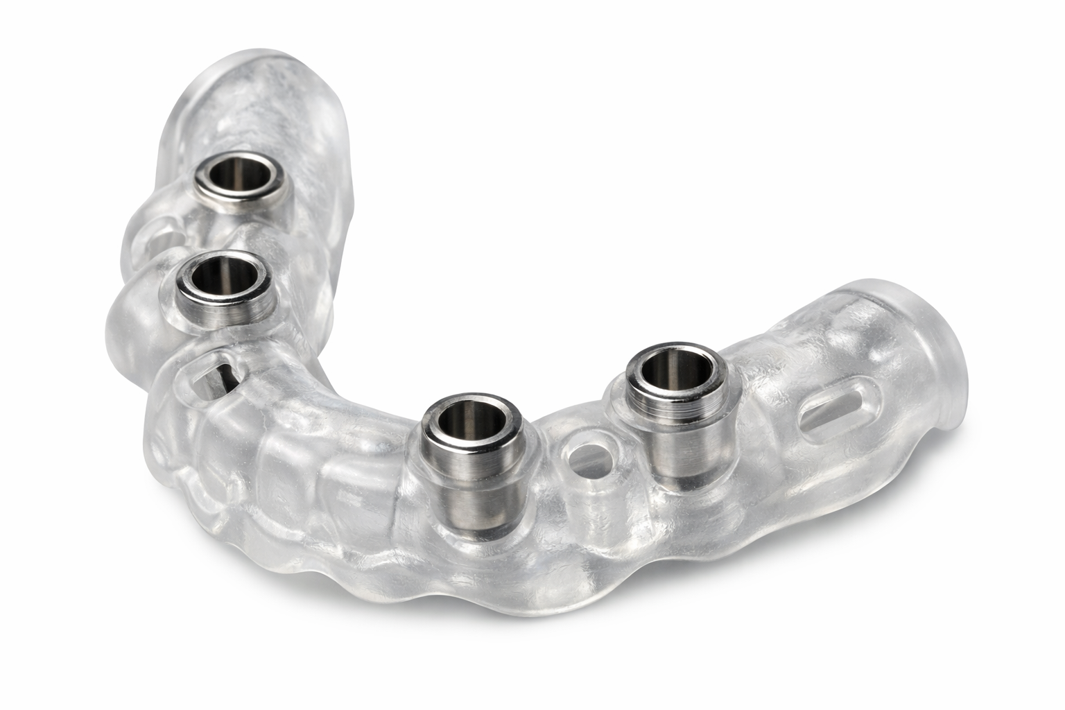 Con la planificación digital se diseña una férula o guía quirúrgica personalizada. Esta guía se fabrica mediante tecnología de impresión 3D y se adapta perfectamente a la boca del paciente. Su función es dirigir las fresas quirúrgicas en la posición previamente planificada.